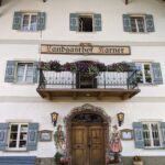 Foto Haus – Der stattliche zweigeschossige Bau ist eine schöne Ergänzung zum Ortsbild. Der blumengeschmückte Balkon mit seinem schmiedeeisernen Geländer, die mit dezenten Farben bemalenen Fensterläden, sowie die Heiligennische und das dekorative Nasenschild an der Nordwestecke prägen die Giebelfront. Über dem Balkon ist eine Tafel angebracht mit der Inschrift: 1910 – Landgasthof Karner – 1982 (Das sind die Zeiten, in denen die Familien Niederauer Besitzer waren). Absolut einladend wirkt auch das großzügige Eingangsportal mit seiner schön geschnitzten, zweiflügeligen Türe. Die gläserne Oberlichte ist, wie bei den meisten Türen dieser Art, mit einem geschmiedeten Gitter mit einem in der Mitte eingearbeiteten Jesusmonogramm I H S, geschützt. In der Malerei am Segmentbogen über dem Portal steht ebenfalls der Name Landgasthof Karner.