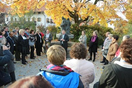 Begrüßung der Jubilarinnen und Julbilare durch Herrn Ernst Freiberger vor der Unternehmenszentrale in Amerang.