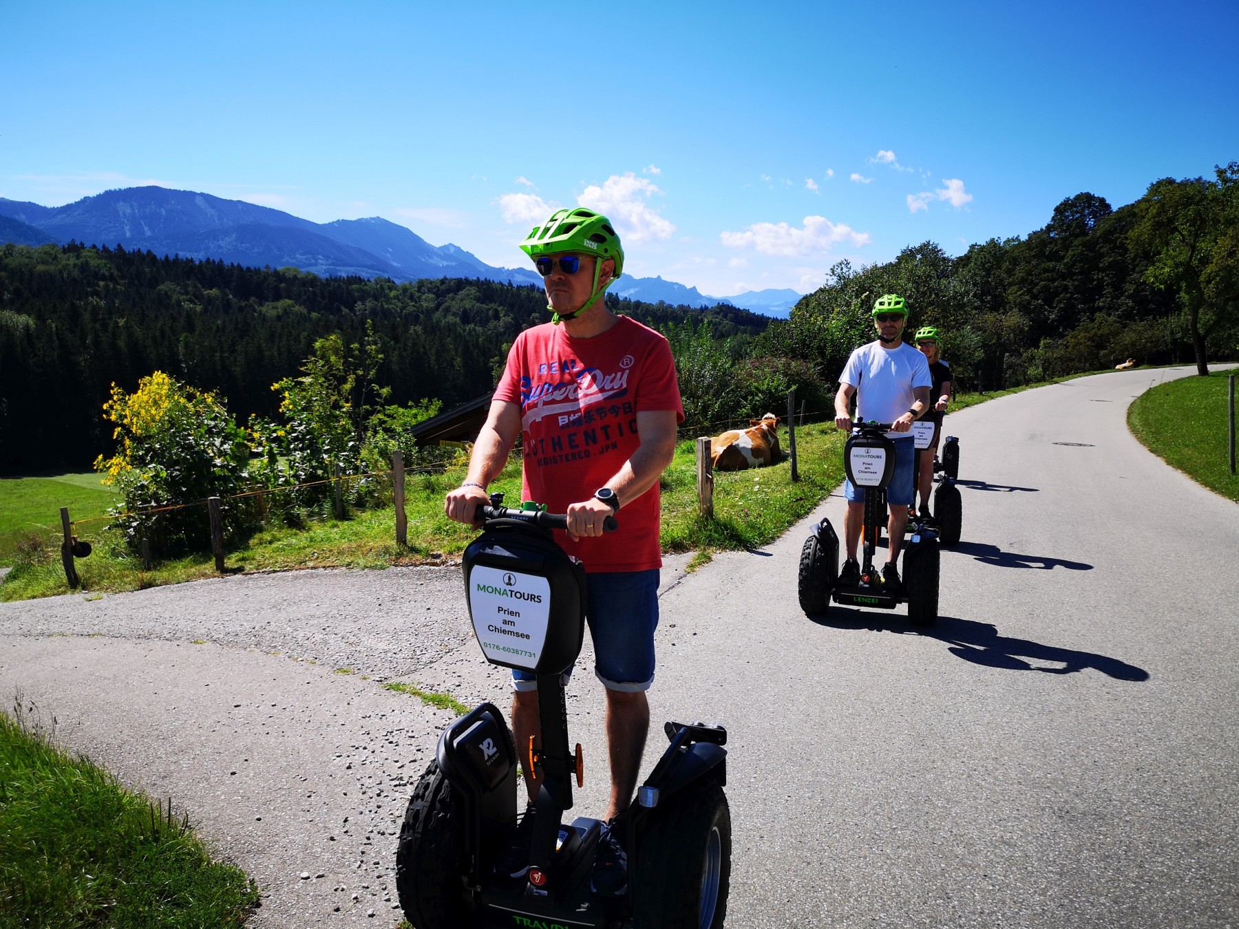 Vorbei an denkmalgeschützten Bauernhöfen und einer über hundert Jahre alten Linde erkunden die Teilnehmer:innen der Segway-Panoramatouren das hügelige Umland von Prien.