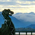 Fast gespentisch, in jedem Fall aber schön zeigt sich das Wikingerschiff Freya im Hafen des Freibadeplatzes Schraml in Prien-Harras in den November-Morgenstunden. Bei näherer Betrachtung scheint es sogar so, dass der Drache am Ende des Schiffes Rauch bis in die nahe Chiemgauer Bergwelt hinausbläst.