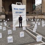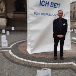 Das Kunstprojekt „FRIEDEN LEBEN“ startete mit einer Kunstinstallation auf dem Odeonsplatz München: Eine 3,5m große Papiertüte in einem Meer aus kleinen Tüten werden auf dem Odeonsplatz aufgebaut. Alle Tüten sind mit der Frage bedruckt „Was trage ich bei? Für eine friedliche Welt“. Wir wollen zum Denken, Sprechen und Handeln anregen, um eine friedliche Welt für alle Menschen zu schaffen. Im Anschluss wird die Skulptur an verschiedenen Orten in München ausgestellt.  Die erste Station ist vom 30.05. – 31.07.2021 das Haus der Kulturen und Religionen München in der Nazareth-Kirche in München-Bogenhausen.