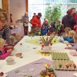 Kalte Füße braucht der Osterhase in Prien-Elperting wohl nicht zu bekommen, denn beim dortigen Wastlhof leben viele fleißige Hühner, die ihn dieser Ostertage gut mit Eiern versorgen. Versorgt wurden dabei auch Priener Familien, die sich im Haus des Gastes trafen. Die Kinder des Katholischen Kindergartens St. Irmingard und die Kinder der Ferienbetreuung der Diakonie an der Franziska-Hager-Grundschule Prien waren im Rahmen der Veranstaltung Osterallerlei der Prien-Marketing Gesellschaft von Kindergartenmama Maria Riepertinger zum Verzieren der Priener Wastlhof Ostereier eingeladen.