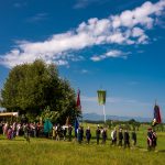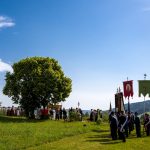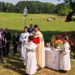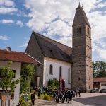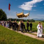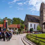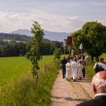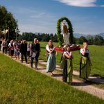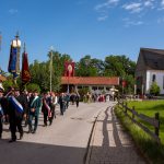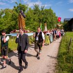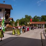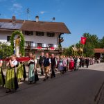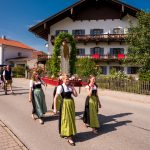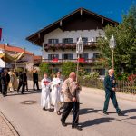 Am Fronleichnamsfest pflegt die katholische Kirche ihre eigene, farbenprächtige Formensprache als eine Demonstration des Glaubens, so auch in Hirnsberg bei Bad Endorf. Es liegt landschaftlich wunderschön auf einen Höhenzug 90 Meter über dem östlichen Teil des Simssees. Die Messe gestaltete dort Pfarrer in Rente, Herr Anton Vejtey, gemeinsam mit Pfarrer C. Kebinger. Begleitet von vielen Vereinen und Gläubigen wurde die Monstranz im Anschluß an den Gottesdienst von Pfarrer Kebinger unter dem schützenden Baldachin durch Hirnsberg getragen. Er wurde begleitet von einer Schar Messdiener mit Weihrauch und Kreuz, sowie von Kommunionkindern in Festkleidung. So marschierte man zu mehreren Feldaltären. Für viele Dorfbewohner ist die Fronleichnamsprozession einfach wichtig. Dass sie teilnehmen und ihren Glauben auch in der Öffentlichkeit bezeugen, ist für sie ganz selbstverständlich. Eine ältere Dorfbewohnerin sagte: „Einmal nicht teilzunehmen, kann sie sich nicht vorstellen – nicht, so lange ihre Beine den Weg noch mitmachen. „Das stärkt mich und gehört einfach zu mir dazu.“