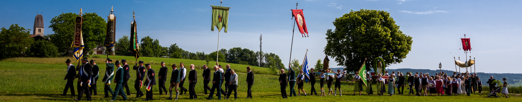 Am Fronleichnamsfest pflegt die katholische Kirche ihre eigene, farbenprächtige Formensprache als eine Demonstration des Glaubens, so auch in Hirnsberg bei Bad Endorf. Es liegt landschaftlich wunderschön auf einen Höhenzug 90 Meter über dem östlichen Teil des Simssees. Die Messe gestaltete dort Pfarrer in Rente, Herr Anton Vejtey, gemeinsam mit Pfarrer C. Kebinger. Begleitet von vielen Vereinen und Gläubigen wurde die Monstranz im Anschluß an den Gottesdienst von Pfarrer Kebinger unter dem schützenden Baldachin durch Hirnsberg getragen. Er wurde begleitet von einer Schar Messdiener mit Weihrauch und Kreuz, sowie von Kommunionkindern in Festkleidung. So marschierte man zu mehreren Feldaltären. Für viele Dorfbewohner ist die Fronleichnamsprozession einfach wichtig. Dass sie teilnehmen und ihren Glauben auch in der Öffentlichkeit bezeugen, ist für sie ganz selbstverständlich. Eine ältere Dorfbewohnerin sagte: „Einmal nicht teilzunehmen, kann sie sich nicht vorstellen – nicht, so lange ihre Beine den Weg noch mitmachen. „Das stärkt mich und gehört einfach zu mir dazu.“