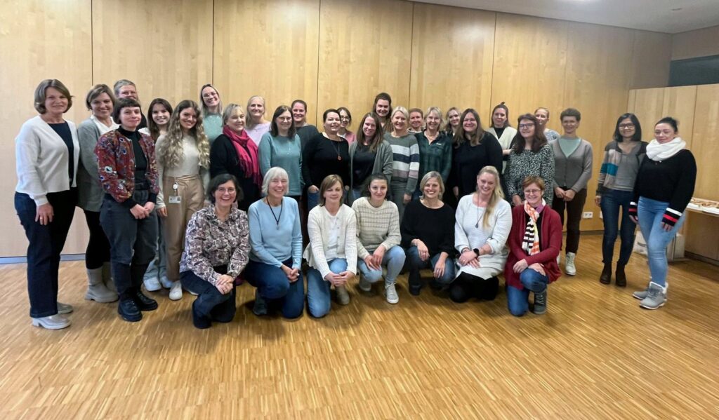 Um diese Kräfte zu bündeln, trafen sich Fachkräfte unterschiedlichster Professionen (Sozialpädagoginnen, Erzieherinnen, Familien- und Kinderkrankenschwestern, Psychologinnen und Therapeutinnen) aus dem regionalen Netzwerk. Neben der Vorstellung der Tätigkeit eines Netzwerkpartners durch Elfe Binder und Petra Finkbeiner, welche über ihre Arbeit bei der Stiftung Ambulantes Kinderhospiz München – AKM, Zentrum Niederbayern mit Bunter Kreis Landshut berichteten, gab es auch einen Fachvortrag von Veronika Maling und Luise Völkl vom Landshuter Netzwerk zum Thema frühkindliche Erziehung in Bezug auf elterliche Bildschirmnutzung.