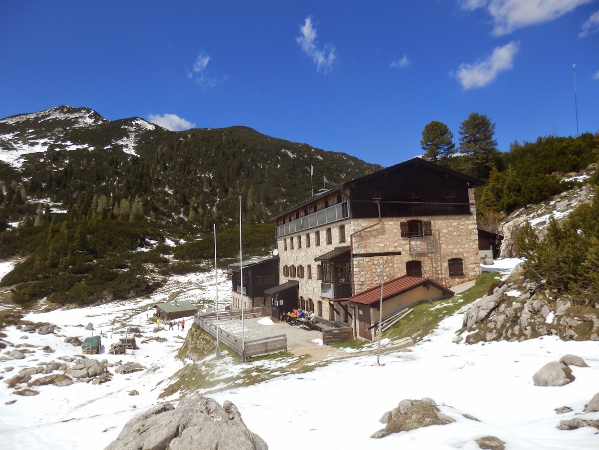 Neue Traunsteiner Huette mit Weitschartenkopf