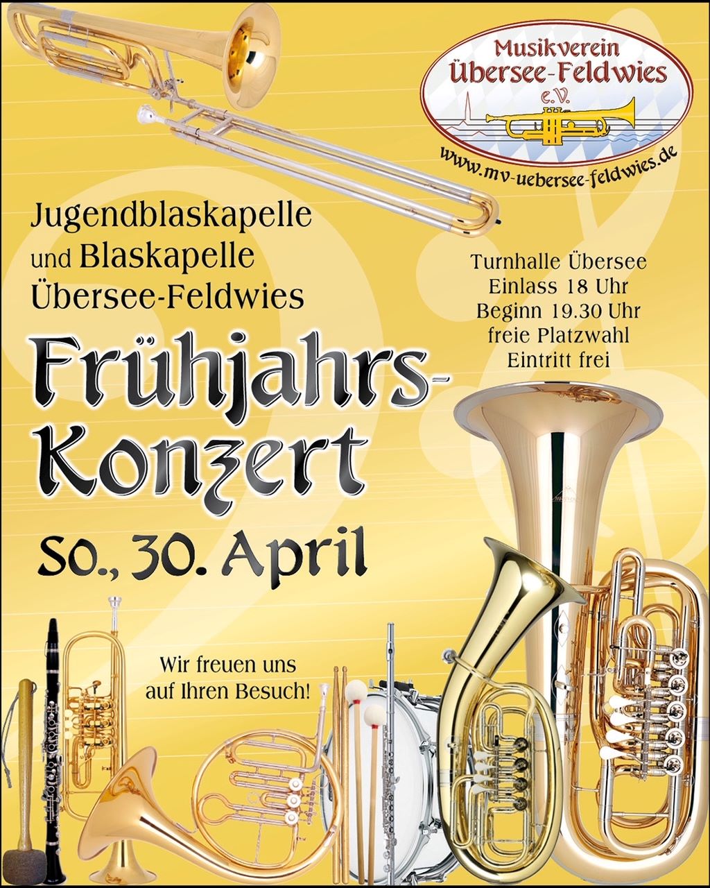 Das Frühjahrskonzert der Blaskapelle Übersee-Feldwies findet traditionell am 30. April um 19:30 Uhr in der Überseer Turnhalle statt.
