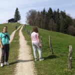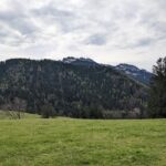 Wir starten in Adersberg, wo ein beliebter Höhenrundweg beginnt. Auf dem Parkplatz steht nur ein einziges Auto – trotz der Osterferien ist überraschend wenig los. Vom Berggasthof Adersberg geht es zunächst steil, später moderater bergauf. Unterwegs begegnen wir lediglich einer Wanderin, die gerade die Blüten eines Kirschbaums fotografiert. Der Weg bietet schöne Ausblicke, bald öffnet sich der Blick auf den Chiemsee.