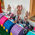 Ein echter Hingucker ist der Osterexpress – eine große, kunterbunte Lokomotive, vollbesetzt mit fröhlichen Osterhasen auf ihrem Weg zum Frühlingsfest. Das passende Schild daneben verrät es schon: „Nächster Halt: Ostern!“