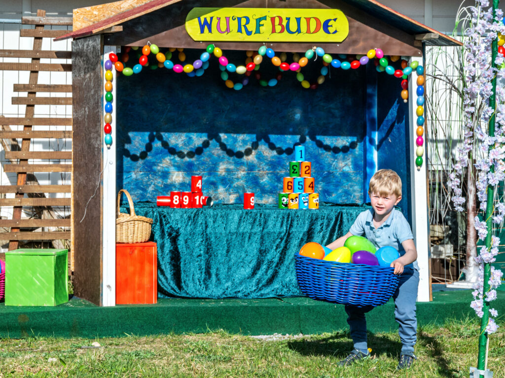 Hier wird nicht nur geschaut, sondern auch ausprobiert: Kinder dürfen die Hupen am Karussell betätigen und sich kleine Süßigkeiten vom Pizza- und Burgerstand stibitzen. Alles ist erlaubt – solange der Osterhase einverstanden ist.