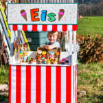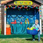 Mitten im grünen Garten glitzert ein buntes Karussell, Hasen sausen auf einem Kettenkarussell durch die Frühlingsluft, und beim kleinen Kiosk duftet es herrlich nach Pizza, Burgern und Eis – aus Schokoladenpapier natürlich. Wer Lust hat, darf sich an der Wurfbude versuchen oder ein paar Runden an der Dartscheibe drehen.