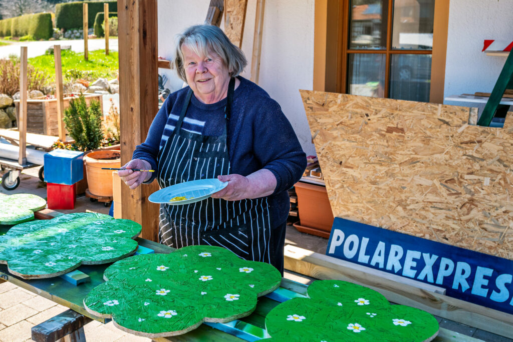 Sechs Wochen lang hat Edelgard Stuffer an ihrem österlichen Wunderwerk gearbeitet – von der ersten Skizze über den Materialeinkauf bis hin zum letzten Pinselstrich.
