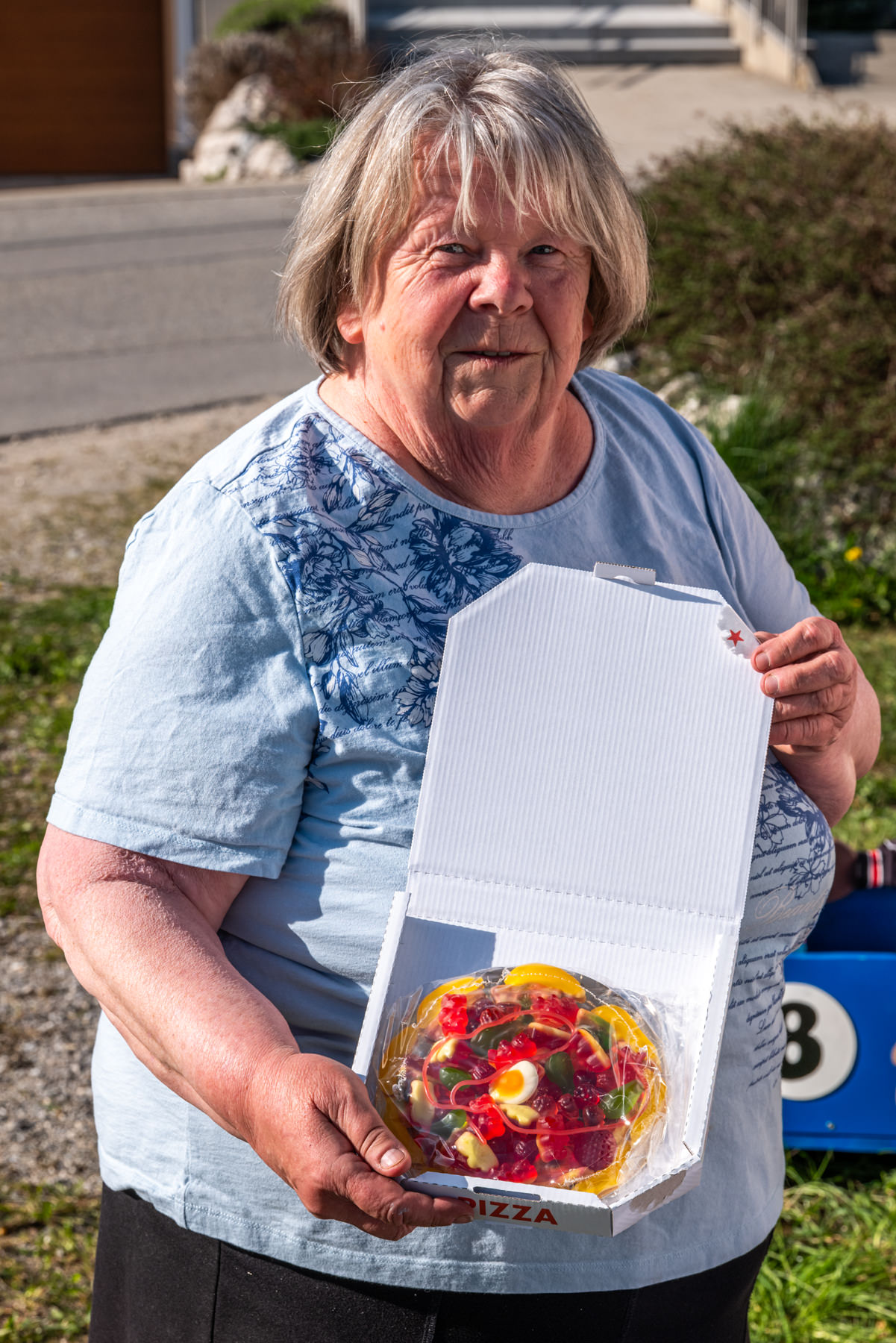 Ein besonderer Hingucker ist die bunte “Süßigkeiten-Pizza”, die Edelgard Stuffer den kleinen Besuchern als Überraschung bereithält. Liebevoll in einer echten Pizzaschachtel verpackt, sorgt die fröhliche Nascherei für strahlende Gesichter.ahren: Ein zauberhaftes Frühlingsfest auf dem Samerberg