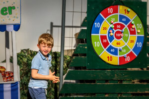 Die Künstlerin begann vor sechs Wochen mit den ersten Skizzen. Unterstützt wurde sie tatkräftig vom fünfjährigen Valentin aus der Nachbarschaft, der eifrig Girlanden aufhängte und die Hasenstadt mit aufbaute. Von kleinen Bänkchen unter selbst gemalten Bäumen bis hin zur Dartscheibe und bunten Ostereiern – an jedes Detail wurde liebevoll gedacht. Das Ergebnis ist eine fröhliche Frühlingswelt, die nicht nur Kinderaugen zum Strahlen bringt.