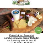 Im Rahmen einer gemeinsamen Aktion mit dem Bayerischen Bauernverband bietet der Anderlbauer in Frasdorf am Samstag, 21. Mai von 10 Uhr bis 12.30 Uhr die Aktion “Frühstück m Bauernhof” und “To Go” – da beginnt der Wochenendtag schon ganz wohlbekömmlich.
