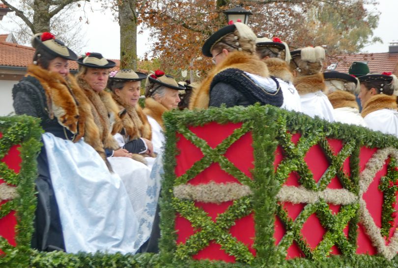 Foto: Hötzelsperger – Trachtenfrauen mit Fuchspelz beim Leonhardiritt 2018 in Wildsteig