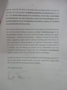 Schreiben an Minister Falthauser