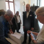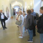 Mit dem gewohnt pünktlichen Schiff der Chiemseeschiffahrt waren wir um 10.15 Uhr auf der Herreninsel und um 10.30 Uhr an der Rezeption im Museum im Alten Schloss, wo wir problemlos die Eintrittskarten zur Führung in der ehemaligen Stiftskirche der Augustiner-Chorherren (maximal 15 Personen) bekamen. Die halbe Stunde bis zum Führungsbeginn nutzen wir, um einen kurzen Blick in den sogenannten Konventstock der Klosteranlage zu werfen. Hier kann man u.a die Privaträume sehen, die sich König Ludwig II., der die Insel Herrenchiemsee 1873 als Standort für sein Neues Schloss erwarb, eingerichtet hatte. Im Konventstock, in dem 1948 der Verfassungskonvent zur Vorbereitung des Grundgesetzes für die Bundesrepublik Deutschland tagte, gibt es auch die hochinteressante Ausstellung „Der Weg zum Grundgesetz – Verfassungskonvent Herrenchiemsee 1948“. Den Konventsaal, in dem damals der Abschlussbericht des Verfassungskonvents unterzeichnet wurde, wollte natürlich jeder sehen, aber auch zur berühmten Exter-Galerie zog es einige aus unserer Gruppe.