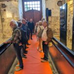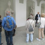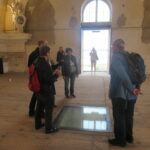 Unser Rundgang begann bei der großen Glocke neben der Bibliothek, führte vorbei an aus dem Chiemsee geborgenen Figuren dreier Chorherren, die bei der Umfunktion des Doms in eine Brauerei von dem barbarischen Eigentümer einfach ins Wasser geworfen wurden und führte dann auf der neu eingebauten Steg- und Plattformkonstruktion sowie Treppenanlage vom Keller durch mehrere Räume hinauf bis zum Emporengeschoss. Wer nicht so gut zu Fuss war nahm den Aufzug in freistehender Stahlglaskonstruktion.
