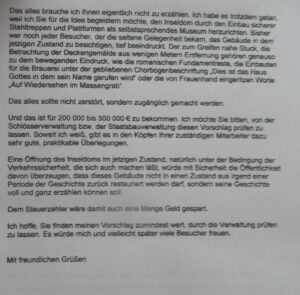 15 Jahre später wurde die Massnahme dann aber doch noch genau wie von Starzmann angeregt umgesetzt. Für uns ein Grund, die Inseldom-Führung in den Mittelpunkt unseres Semestertreffens zu stellen.