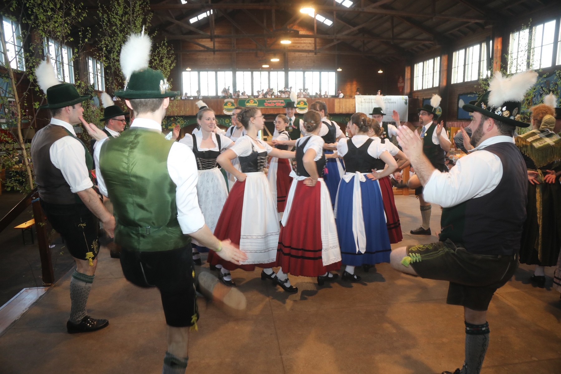 Diese besondere und in ihrer Form wohl einmalige Brauchtumsveranstaltung statt, unter der Schirmherrschaft des Landrates des Landkreises Landshut, Peter Dreier. Über fünf Stunden präsentierten 22 Gautanzgruppen und Gauplattlergruppen im Bayerischen Trachtenverband ihre jeweiligen regionalen Tänze in ihren schmucken Trachten eine perfekte Veranstaltung der Sonder- und Extraklasse sowie ein erfolgreiches Bekenntnis zur Brauchtumspflege und vorbildlichen Jugendarbeit nach dem immer wieder bewährten Motto: “Do bin i dahoam”. Zwischen den jeweiligen Gauauftritten folgten Volkstanzrunden für Jedermann. Auf Initiative des Sachgebiets Volkstanz und Schuhplattler mit den Moderatoren Hildegard Kallmaier aus München, Matthias Wiesheu und Florian Kreß wurde das fünfte Gesamtbairische Tanzfest wieder vorbereitet. Ziele waren unter anderem das wenige von Hinterskirchen entfernte und inzwischen fertiggestellte und in Betrieb genommene Trachtenkulturzentrum von Holzhausen, Marktgemeinde Geisenhausen zu fördern, aber auch zugleich selbst eine gewaltige Freude am Tanzabend zu haben. Diese Freude war bestens sicht- und spürbar bei den Auftritten aller Gaugruppen, die dem Bayerischen Trachtenverband angeschlossen sind, bei den allgemeinen Tanzweisen, bei den Gemeinschaftsplattlern und bei den Ehrengästen, die in ihren Grußworten hellauf begeistert waren vom jugendlichen Schwung innerhalb des Bayerischen Trachtenverbandes.