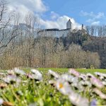 Die Wiese unterhalb des historischen Schloss Hohenaschau verwandelt sich gerade in ein Meer von Gänseblümchen. Während auf den Bergen im Priental, wie hier im Hintergrund die Sonnwendwand, noch tiefster Winter herrscht, leuchtet es weiß und gelb auf den Wiesen in Aschau i.Chiemgau. An allen Ecken und Enden hält der Frühling nun Einzug und die Leute können es kaum erwarten bis das große Erwachen der Natur im vollen Gange ist. Ja, Leben ist das mit der Freude und den Farben. Nicht das mit dem Ärger und dem Grau.