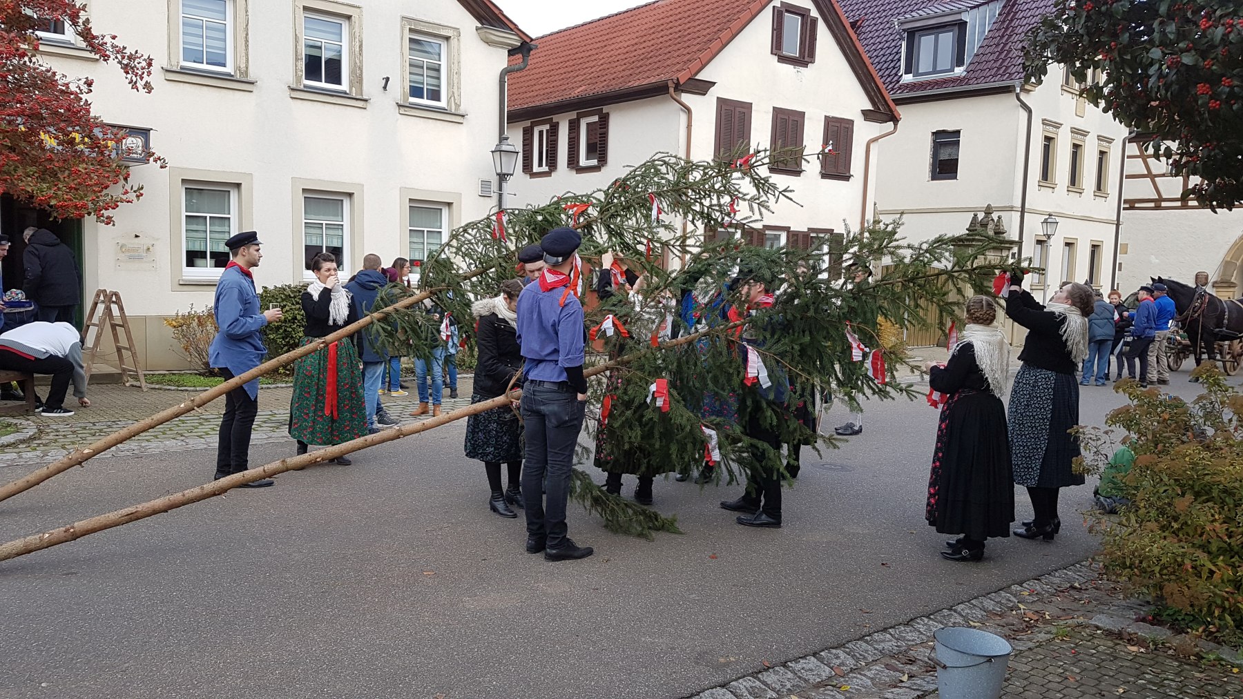 Beim Fichtenaufstellen am Kirchweihsamstag