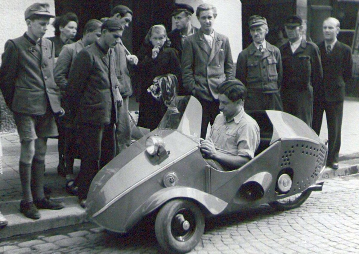 Made in Rosenheim_Flugzeugbau-Ingenieur Fritz Fend im Flitzer 1949 Quelle Stadtarchiv Rosenheim