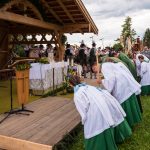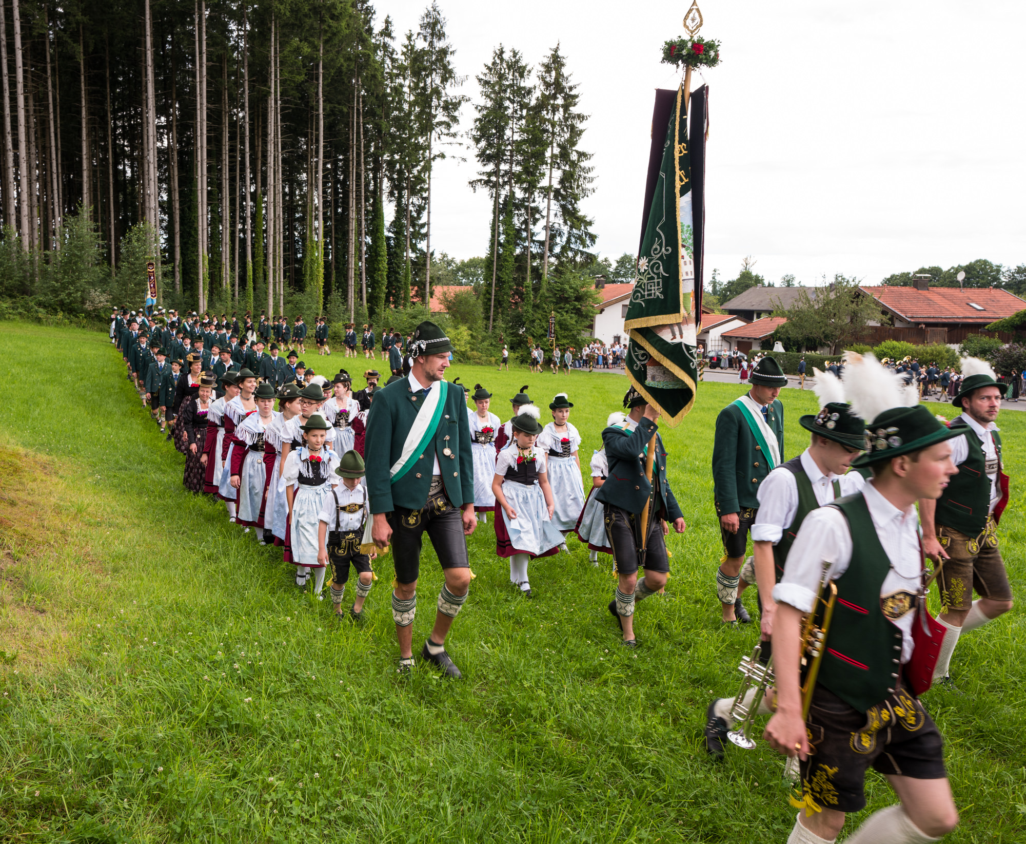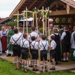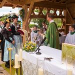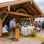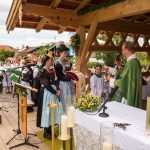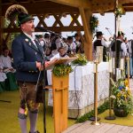 Erster Höhepunkt des Festtages war der Gottesdienst, den Pfarrer Klaus Hofstetter mit Pfarrer Josef Steindlmüller und Pater Dr. Moses Asaah Awinongya aus Ghana feierte. Rund 1800 Trachtler aus den 23 Vereinen des Chiemgau-Alpenverbandes und die Mitglieder der Atzinger Ortsvereine versammelten sich mit fast 40 Fahnenabordnungen zum Feldgottesdienst. Die musikalische Gestaltung übernahmen die Musikkapelle Wildenwart, das Chiemgauer Saitenensemble sowie der Festchor Atzing unter der Leitung von Rainer Schütz.