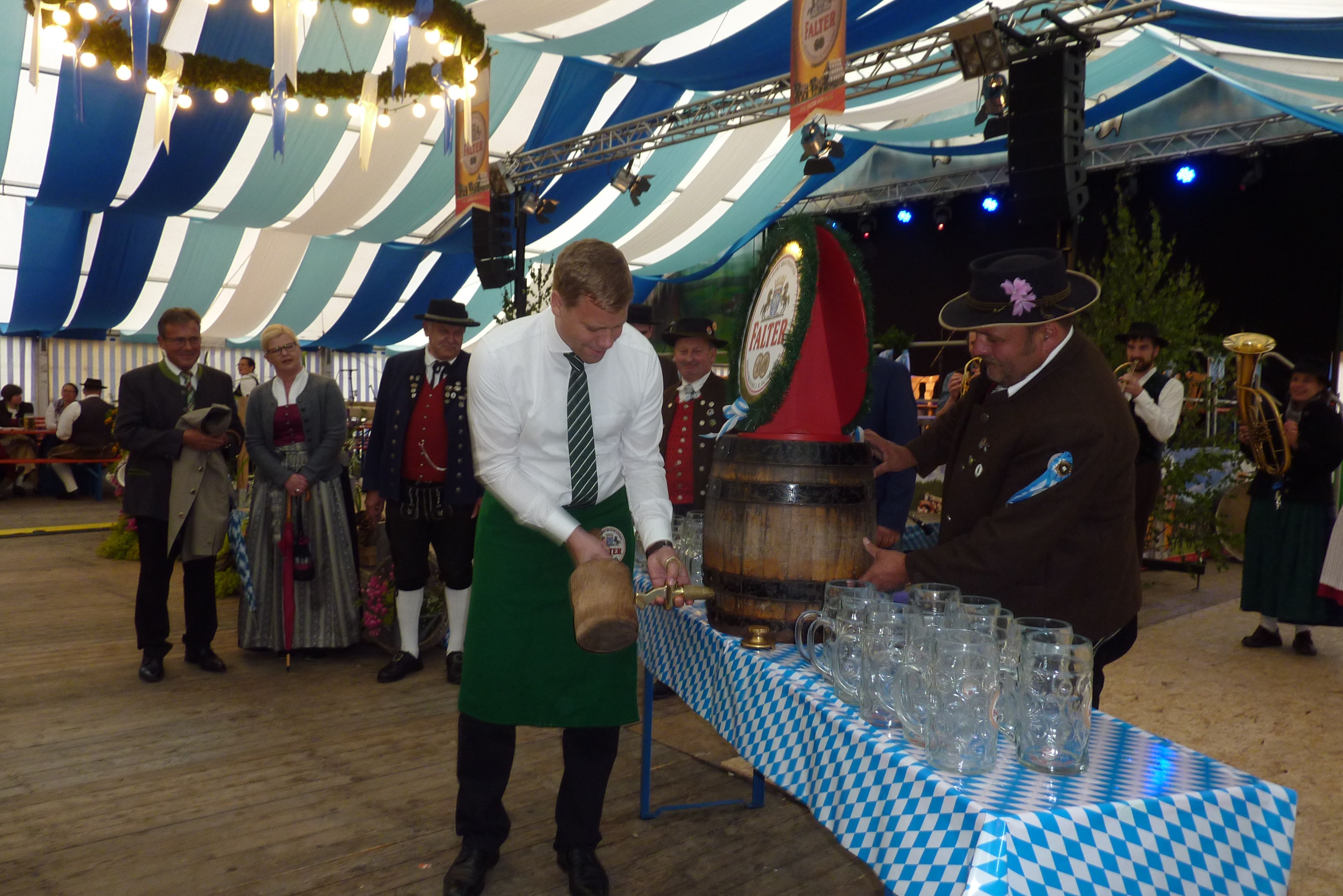 Schirmherr Dr. Olaf Heinrich beim offiziellen Bieranstich.