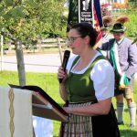 Allerdings unter Bedingungen, hervorgerufen durch Corona-Verordnungen, die vor allem ältere Mitglieder wie etwa Ehrenmitglied Hartl Singer in seiner 66-jährigen Laufbahn als Trachtler noch nie erlebte. Während der Pandemie „Dahoam bleibm“ und sich nicht mit Gleichgesinnte treffen, Abstand und Hygieneregeln einhalten und auf das bunte Platteln und Drehen der Jugend verzichten müssen kannte der 78-jährige Radlmechaniker aus Kematen, der zuverlässig als Festleiter drei Jubiläen verbuchte, bislang nicht. Trachtler halten in schwierigen Situationen zusammen, stellte Uschi Berger (46) als Vereinsschriftführerin und Mitorganisatorin von „Gaufest dahoam“ in Kematen mit Blick auf die bunte Kulisse zu Beginn eines ansprechenden Wortgottesdienstes mit Fahnenabordnungen örtlicher Traditionsvereine am kleinen Altartisch im Obstgarten fest. Für geistliche und meditative Gedanken hatte Barbara Huber passende Worte zur gegenwärtigen Situation im Matthäus-Evangelium gefunden. Auf einem Acker wachse nicht nur die gute Weizensaat, welche der Bauer ausbrachte, sondern auch das Unkraut, das vom Bösen stamme. Beides solle zusammen wachsen. Jedoch solle das Unkraut zuerst geerntet, gebündelt und anschließend ins Feuer geworfen werden.