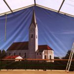 Gaufest-Festzelt-Aufbau in Pang trotz Hitze im Plan