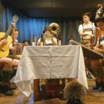 Der Abend begann schwungvoll mit der Tschagguns Polka gespielt von den Außengebirg-Musikanten. Danach spielten und sangen die fünf Volksmusikensemble abwechselnd in der ihnen eigenen Klangart. Passend zum Motto des Abends „Hopfen und Malz – Gott erhalts“ waren die Texteinlagen von Markus Gromes zwischen den einzelnen Absätzen dem Thema „Bierherstellung“ gewidmet.  Die sechs jungen Musikanten aus Waging, Inzell, Siegsdorf, Lauter und Altenmarkt, die als Außengebirg-Musikanten auftreten, haben im Stil der Weißenbacher Tanzlmusi ganz bärig aufgespielt. Sie spielen ihre Musikstücke immer auswendig, was den Moderator Gromes sichtlich beeindruckte, weil es viel Erfahrung dazu braucht. Auch das Publikum konnten  sie mit dern vorgetragenen Walzern und Polkas  richtig begeistern.  Die Hubertus Musikanten aus Riedering haben die erste Runde mit dem  Christl Landler abgeschlossen.  Die fünf Burschen kommen aus  Riedering und spielen eine schneidige Musi – Polkas, Boarische, Märsche und ähnliches, in der Bestezung der legendären Rotofenmusi aus Berchtesgsaden. Trotz des Namens seien nur zwei von ihnen Jager, verrieten sie auf Nachfrage von Gromes.  Die leiseren Töne des Abends kamen von der Kressenberger Soatenmusi.  Mit Zither, Gitarre und  Bass spielten die zwei Frauen und zwei Männer aus Inzell, Vachendorf und Siegsdorf einfühlsame Stücke wie den „Freundschaftswalzer“, den „Oberhausbergmarsch“ oder den Walzer „Für d’Mama“.