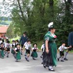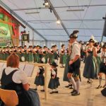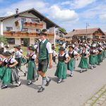 Gemeinsam zogen alle zurück ins Zelt, wo zur Frühschoppenzeit die Jugendgruppen der umliegenden Vereine und die Gaujugendgruppe ihre Auftritte zeigten. Am Nachmittag beim großen Festumzug zogen durch das sauber rausgeputzte Hopferau die 3.818 Zugteilnehmer in 50 Zugnummern, in Gebirgs- und historischen Trachten, mit dabei auch Trachtler aus dem Lechtal und Laimbachtal, die Ortsvereine und zwischendurch immer wieder ein schöner Festwagen. Im Zelt und auf der Freibühne folgten Ansprachen, Ehrentänze und die Vergabe der Meist- und Weitpreise. Schirmherr Dr. Theo Waigel war sichtlich froh über das gute Wetter und freute sich auf ein Wiedersehen. Den Weitpreis erhielten D’Windachtaler Hofstetten, den Meistpreis außer Gau D’Schwalbenstoaner Hohenfurch und die stärkste Gruppe im Gau mit 214 Zugteilnehmern waren D’Schwanstoaner Schwangau. Die Musikkapelle Schwangau musizierte anschließend zur Unterhaltung und zum Festausklang d’Blechbätscher. „Kommet und feiret mit eis, mir feiret mit uib!“ Schea, dass so viele Gaufestbesucher und Gäste zum Feiern kommen sind.