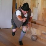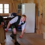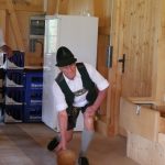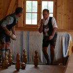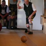 So manchen packte der Ehrgeiz, um beim Kegelausflug des Gebiet „Simssee“ gut zu punkten. Denn es ging auf die Kegelbahn im Trachtenkulturzentrum in Holzhausen. Sie wurde überlieferten Bauwerken originalgetreu nachgebildet und vor mehr als zwei Jahren ihrer Bestimmung übergeben. Bei der Einzelwertung und auch beim Gruppenkegeln, ausgelost mit den Spielkarten „Oache“ oder „Schian“ kam sportlicher Kampfgeist auf. Dabei ging die Gruppe „Oache“ als Sieger hervor. Die wichtige Aufgabe der Kegelbuam, das Aufstellen der Kegeln, übernahmen die Trachtlerinnen und Trachtler abwechselnd in Eigenregie. Gut gestärkt mit bodenständiger Hausmannskost, von Wirt und Wirtin in Holzhausen und selbst mitgebrachtem Kaffee und Kuchen ging es sportlich zur Sache.