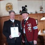 Die GSK Samerberg konnte ihrem aktiven Kameraden Franz Binder zu seinem 70. Geburtstag gratulieren. Dazu feuerte der Salutzug eine dreifache Salve und die Hauptmannschaft überreichte einen Präsentkorb. Bei der anschließenden Feier würdigte Hptm. Fritz Dräxl die Verdienste Binders um die Kompanie und zeichnete den rüstigen Jubilar mit der Verdienstmedaille der GSK Samerberg in Silber aus.