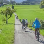 Von Prien aus startete die Gruppe durch das Eichental zum ersten Halt, dem E-Werk an der Prien, einem historischen Juwel, das um die Jahrhundertwende gebaut wurde und immer noch in Betrieb ist. Wasserwerks-Mitarbeiter Florian empfing die Teilnehmer und führte diese in das Innenleben des E-Werks, in dem über 100 Jahre alte Turbinen und Maschinen noch in Betrieb sind. Kaum zu glauben, dass umgerechnet noch circa 17 Haushalte mit dem Priener Wasserwerks-Strom versorgt werden können. Weiter ging es dann über Nebenstraßen in den Westen der Marktgemeinde Prien. In Munzing blieb die Gruppe kurz stehen um einen Blick auf den Bauernhof von Thomas und Veronika Mayer zu werfen, die ihre Biohendln und ihr Bio-Rindfleisch ab Hof verkaufen. Nur einen Kilometer weiter staunten die Radler nicht schlecht, als auf einmal Kängurus und Alpakas über die Koppel hüpften. Den Berg hinunter und auf der Gegenseite wieder hinauf mit Blick auf die ganze Alpenkette wurde schließlich der Wastlhof in Elperting erreicht. Maria Riepertinger erklärte der Gruppe die Haltung und das Leben von all den glücklichen Hühnern auf dem Hof und der Direktvermarktung der Priener Freilandeier. Der eine oder andere ließ es sich dann auch nicht nehmen, sich im Hofladen einzudecken. Nur ein kleines Stückchen weiter und ein nahezu unbekanntes Kulturgut ist das alte Moorbad von Atzing. Eine romantische Vorstellung, dass darin schon Prinzessinnen aus dem Hause Wittelsbach gebadet haben.