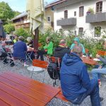 Nach den vielen Stopps kurz hintereinander war es an der Zeit, mal ein paar Kilometer zu pedalieren. Zacking war daher das nächste Ziel. Hier unterhält Jakob Mayer einen privaten Weinberg mit insg. 80 Rebstöcken. Er führte die Gruppe durch die Rebreihen und erzählte von der Pflege, Ernte und auch der Weinkelterung. Es war dann nur logisch, dass alle vom „Zackinger Weißen“ probieren durften. Da es langsam Mittag wurde und im Wein gerne ein Fisch schwimmt, wie der Volksmund sagt, wurde schließlich die letzte Station angesteuert, die Chiemseefischerei Stephan in Prien. Auch hier erzählte Chiemseefischerin Verena von der Fischerei auf dem Chiemsee und beantwortete viele Fragen. Hier fand die Radltour ihren Ausklang, das Resümee der Teilnehmer war Begeisterung und die Erkenntnis, dass die Umgebung von Prien sehr viel zu bieten hat und diese mit dem Fahrrad zu erkunden, sehr großen Spaß machte.
