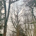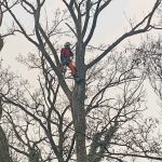 Schwindelfreiheit reicht nicht aus, um die Arbeiten in großer Höhe an Bäumen zu leisten, wenn bei diesen Handlungsbedarf besteht. Wie unsere Bilder an einem geschädigten Eschenbestand im Westen der Gemeinde Prien zeigen, braucht es zusätzlich handwerkliches Geschick und sportliche Fitness, um die Arbeiten mit Sicherungsseilen und Helm erledigen zu können.