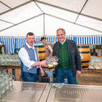Vorstand der Musikkapelle Nußdorf Franz Schober und Bürgermeisterin Susanne Grandauer beim Bieranstich im Festzelt