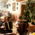 Fotos: Hötzelsperger – Eindrücke von der Christbaum-Versteigerung der Wildenwarter Veteranen in Atzing – 1. Die Brüder Georg und Seppi vom Samerberg mit Ziachweisen – 2. Versteigerer Andi Stoib