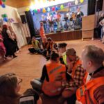 Die Musikgruppe Alpenbeat sorgte dieses Mal für die musikalische Unterhaltung. Eine lustige Einlage zeigten die Aktiven des Vereins. Drei fiktive Personen mussten sich hierbei in drei unterhaltsamen Spielen messen. Dabei wurden zum Teil auch nicht-eingeweihte Personen aus dem Publikum miteinbezogen. Höhepunkt des Abends war kurze Zeit darauf der Auftritt der Aschauer Faschingsgilde, welche zunächst klassisch und später gemäß ihres diesjährigen Mottos “Hände hoch Banküberfall” auftraten. Kurze Irritation und Heiterkeit im Saal gab es vorm Beginn des Auftritts, als sich verkleidete Klimaaktivsten entsprechend ihrer realen Vorbildern an die Tanzfläche “klebten” und so den Start des Auftritts verzögerten.