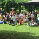 Im Anschluss wurde im festlich geschmückten Garten gespielt, getobt und gefeiert. Zur Stärkung wurde dank Unterstützung der Eltern ein großzügiges Buffet vorbereitet. Eine besondere Attraktion für die Kinder war der Besuch vom Wurlitz, dem kleinen Troll, der den Kindern von seinem Leben im Wald vorsang und mit seinen lustigen Geschichten für viel Spaß sorgte. Dabei wurde fröhlich mitgesungen, gehüpft, getanzt und über Baumstämme gesprungen.