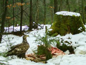 Aas zieht auch seltene Arten an. Im Nationalpark Bayerischer Wald kam zu einem ausgelegten Rotwildkadaver ein Seeadler. (Foto: Nationalpark Bayerischer Wald)
