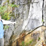 Der Diplom Geologe Dr. Robert Darga hatte auf das Geschehen mit dem Klobenstein eine andere, eher wissenschaftlich fundierte Sichtweise. Die vermittelte er auf einer Geologischen Wanderung an der Klobensteinschlucht. Eingeladen dazu hatte der Initiativkreis Bergsteigerdorf Schleching, der das Jahresmotto „Wasser“ an diesem Platz eindrucksvoll vertreten sah. Viele interessierte Besucher wollten bei der Wanderung gern mehr über die Vergangenheit dieses besonderen Platzes wissen. Dazu ging Dr. Darga 200 Millionen Jahre in der Zeitrechnung zurück, als sich viele Schichten der Erdkruste aufbauten und nach Europa geschoben wurden bis zum Höhepunkt der letzten Eiszeit vor etwa 20.000 Jahren, da ragten nur die höheren Gipfel der Alpen aus dem Eis. Gletscher strömten durch die großen Täler und weitere Schichtungen kamen zustande. Verwitterung führte zu dem heutigen Aussehen der Alpen. Der Geologe zeigte wie Bäume, die in Felsspalten wachsen, den Fels spalten können. Er schlug auf dem Weg Teile aus dem losen Gestein auf denen Pilze und Algen eine Symbiose mit Flechten eingehen und so die Steine über die Zeit zersetzen. Der Weg der geologischen Wanderung führte zu der neuen Brücke über die Ache, wo ebenfalls zum Beispiel an den Gletschermühlen die Kraft des Wassers eindrucksvoll gezeigt werden konnte. Auf der Brücke mit dem Blick auf die Entenlochklamm, eine felsige Engstelle zwischen Schleching und Kössen, waren ebenfalls die vom Geologen erklärten tiefen Einschnitte im Fels zu sehen,
