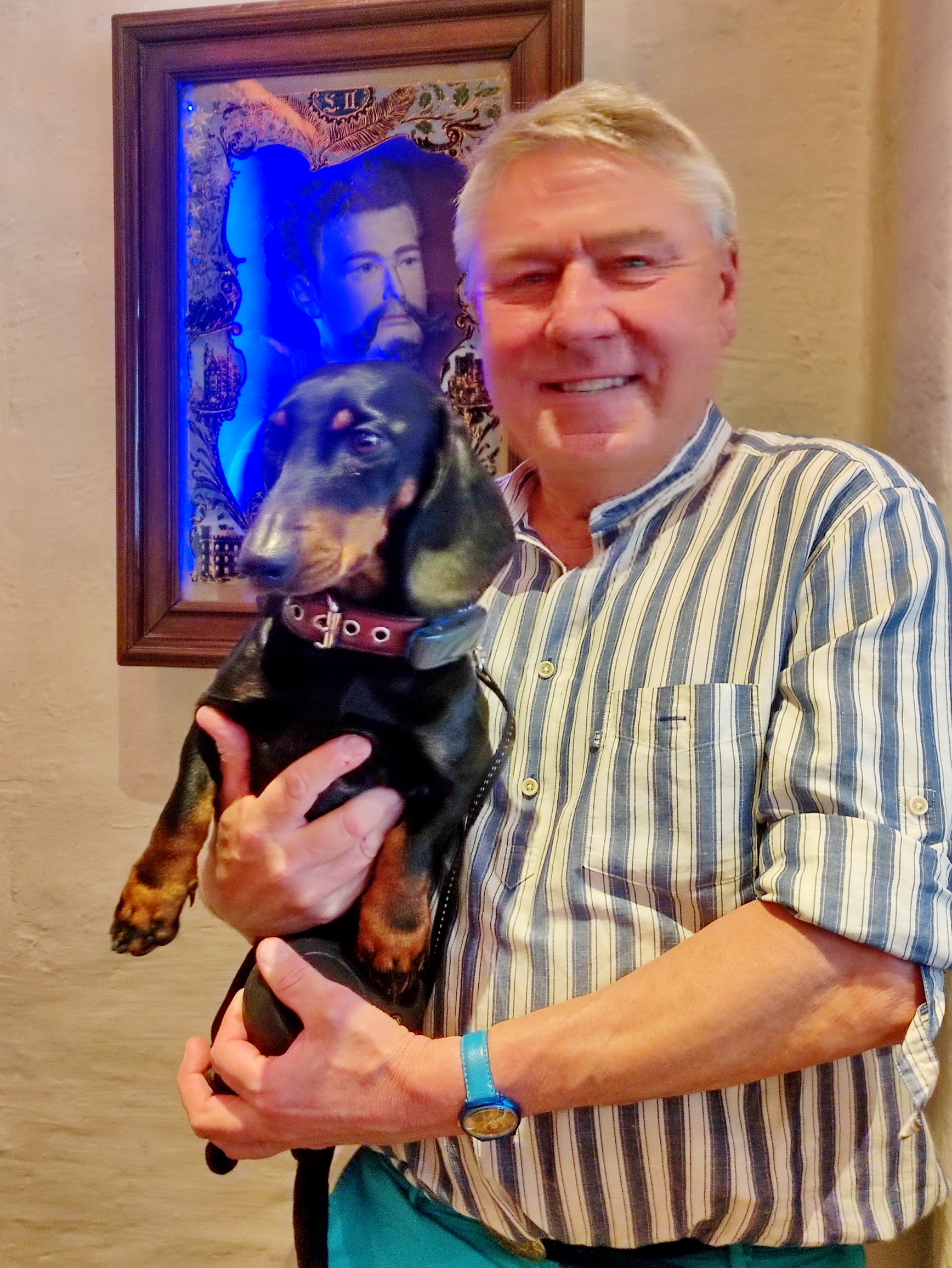 Mit Ludwig II in der „Deutschen Eiche“: Dietmar Holzapfel und sein blaublütiger Dackel „Tino“. Foto & Text: Karin Zühlke