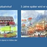 Der erste Münchner Bahnhof entstand 1839 dort, wo heute die Hackerbrücke steht. Es wurde ein einfacher Holzbau. Von dort sollte der Startpunkt sein der Bahnlinie von München nach Augsburg. Bald merkten die Fahrgäste, dass der Münchner Bahnhof eine halbe Stunde Fußweg zur Innenstadt entfernt war. „Zu weit“, so der Tenor unter den Fahrgästen. Außerdem ist er für eine Stadt wie München zu klein und wenig imposant. Es entstand ein Streit für eine neue Position. Plötzlich stand der erste Bahnhof über Nacht in Flammen. Nur ein Häufchen Asche blieb davon übrig. Man munkelte in der Stadt: „der wurde warm abgebrochen“. Die Brandstiftung konnte nie aufgeklärt werden. Damit war ganz schnell der Streit für einen stadtnahen Standort entschieden.