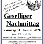 Der Pfarrgemeinderat von Wildenwart lädt für Samstag, 31. Januar zu einem geselligen Nachmittag in das Pfarrheim “Christkönig” ein.