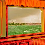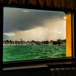 Auch bei Regen lohnt sich eine Schifffahrt auf dem Chiemsee, zu sehen gibt es allemal Beeindruckendes – wie diese aktuellen Bilder von einer Rundfahrt bei Seebruck zeigen. Beim Blick zur Abendsonne über Schafwaschen perlen am Fenster des Schaufelraddampfers Ludwig Feßler die Regentropfen ab. Eine aussesrgewöhnlich farbige Gewitter-Stimmng.