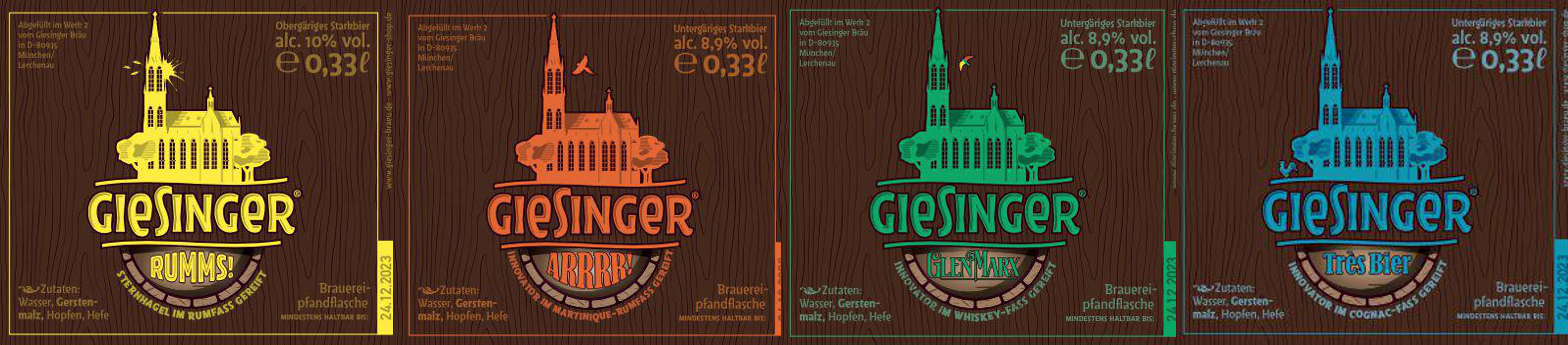 Alle vier Biere sind ab 05. April 2023 als 0,33 Liter Flaschen im Kasten und einzeln erhältlich, der UVP liegt bei 5,90 Euro pro Flasche. Die Limited Edition ist beim Giesinger an der Rampe (Giesing und Lerchenau), im Webshop und im Stüberl sowie im Stehausschank erhältlich.